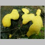 Slime molds are mostly TINY and are not often noticed unless you are seeking them. The Scrambled-egg Slime Mold (center photo above) is common in gardens, on lawns, in wood-chip mulch, and other suburban locations. Like only a few common woodland species, it can cover an area of several square feet. Slime molds are actually not fungi (they're more closely related to amoebas!) but they do produce spores and many mycologists continue to study them.