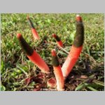 STINKHORNS have a bizarre variety of shapes, but most often are phallic in shape or have "arms" that resemble tentacles. Many are quite colorful, and they are common in gardens and on lawns. Most species emit a very foul odor, which is designed to attract flies (to help spread the spores).